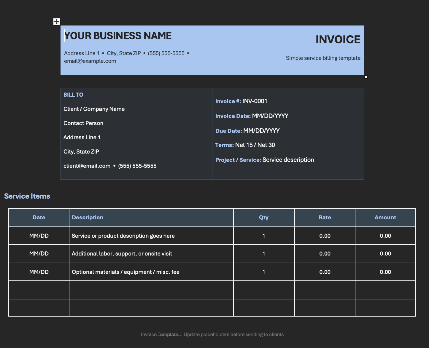 These templates are editable and intended to be customized for your business. This product is for informational and organizational use only and does not constitute legal, tax, or compliance advice.