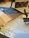 Introducing our elegant folder-style book with a sophisticated ribbon closure. Inside, you'll find 5 beautifully crafted cards, 5 stylish tags, and a chic notebook, all in coordinating black and white designs. Each piece features a customizable monogram, adding a personal touch to your correspondence. Perfect for gifts or personal use, this set combines functionality with timeless style. Inside left blank to leave your personal message.