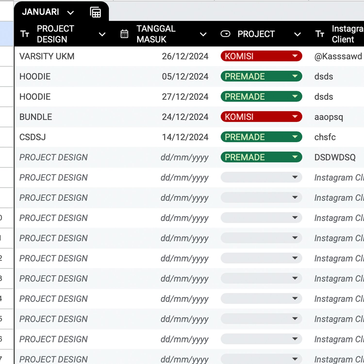 - Mempermudah untuk mencatat project yang Masuk di setiap harinya.