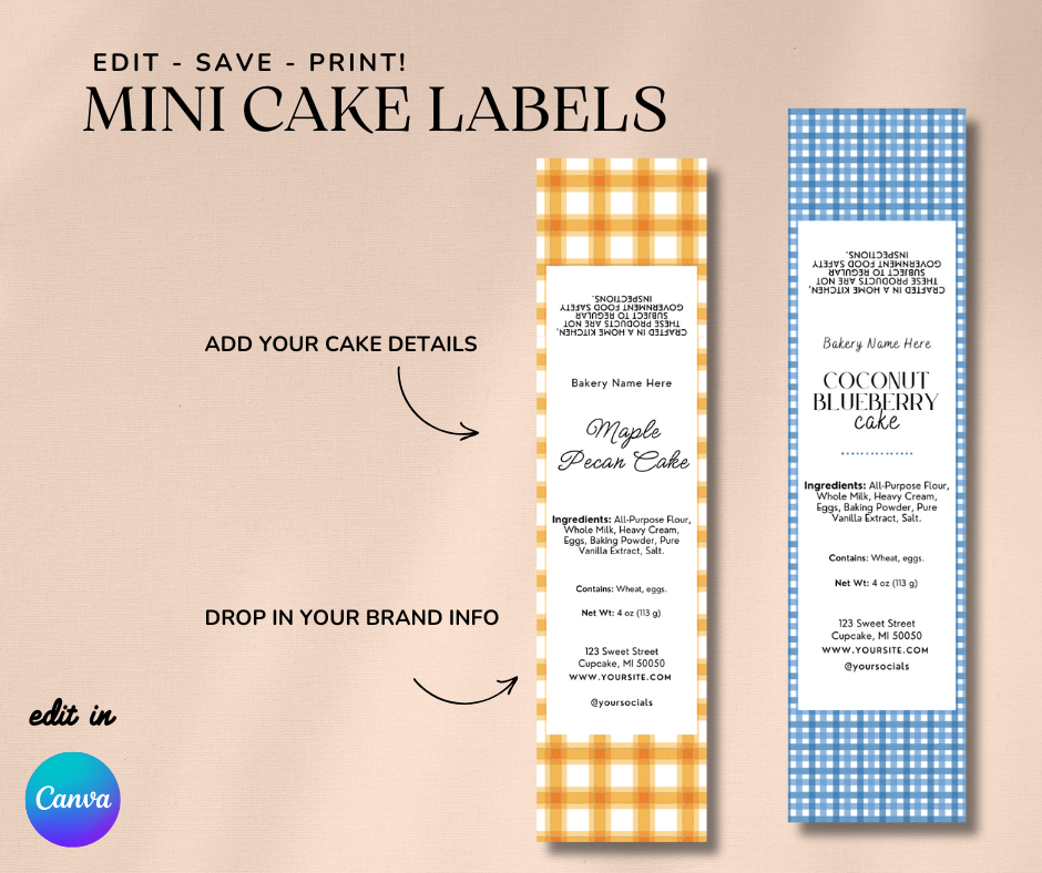 Bring cozy charm to your treats with this classic gingham collection! Perfect for fall markets or everyday cottage-style packaging, these labels add a warm, polished touch to mini cakes, loaves, and more.
