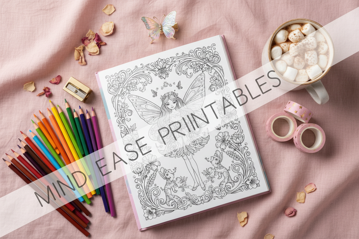 Introducing the Mind Ease Printables Fairy Garden Colouring Book —