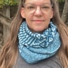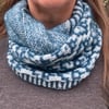 The cowl is worked flat starting with a field of linen stitch with the yarns held together, then switching it up to a large field of beautiful mosaic, finishing with stunning stripes before seaming the two ends together.