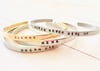 Handcrafted with precision and care, this delicate bracelet features a slim band adorned with your chosen wording, creating a wearable reminder of your story.