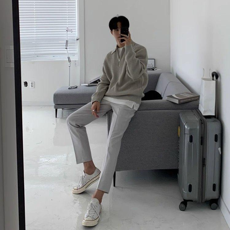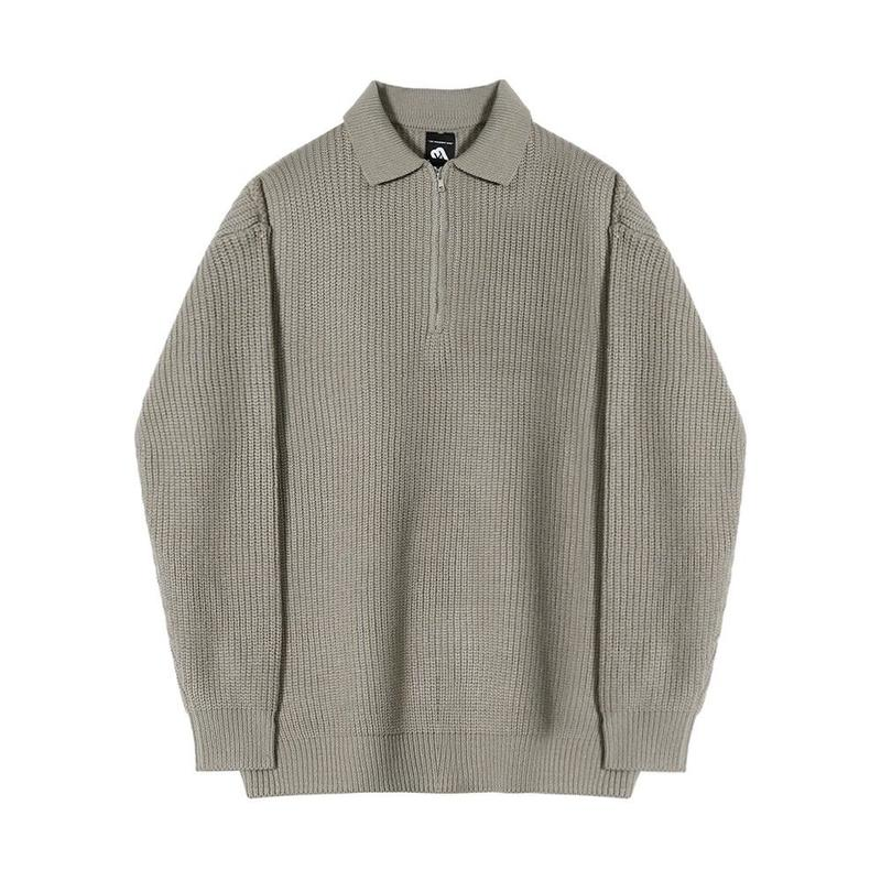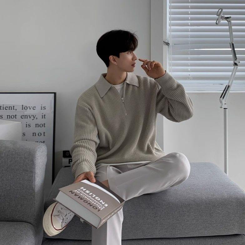 Knitted Polo Shirt with Polo Neck for Men, Long Sleeve Sweater, Korean Style, Relaxed and Casual, Versatile, Solid Color, Autumn-Winter