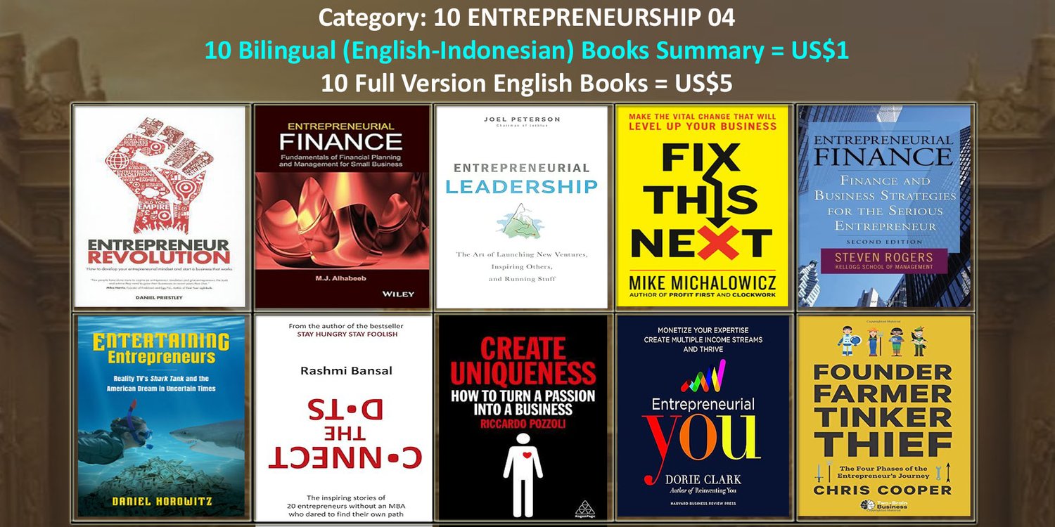 · Untuk 10 buku summary dalam 2 bahasa (English-Indonesian), hanya perlu 1 dollar saja, atau Rp.16.000,-
