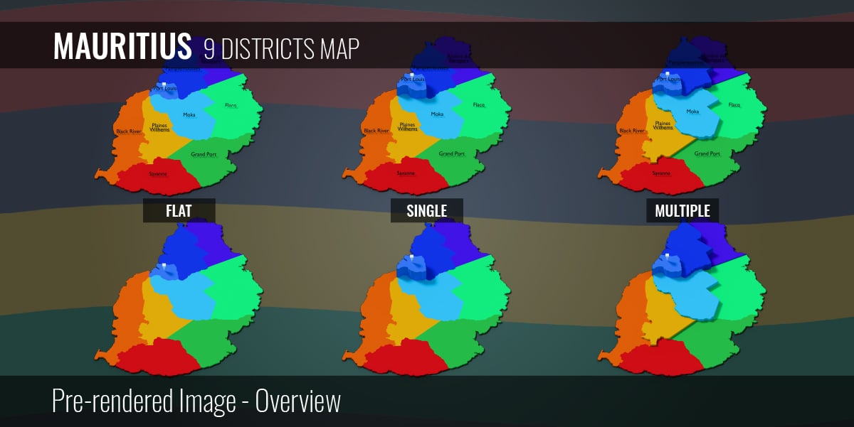 Mauritius - 9 Districts Map (3D + Pre-rendered Images)