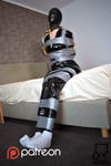 Picset includes: Tapegag, medical tapegag, duct tapegag, rope bound, leather collar, rope bound, shiny catsuit, boots, socked feet, sponge stuffgag, ungagging, regagging, latex hood, heavy taped up, tape boxtie, mouth sealed