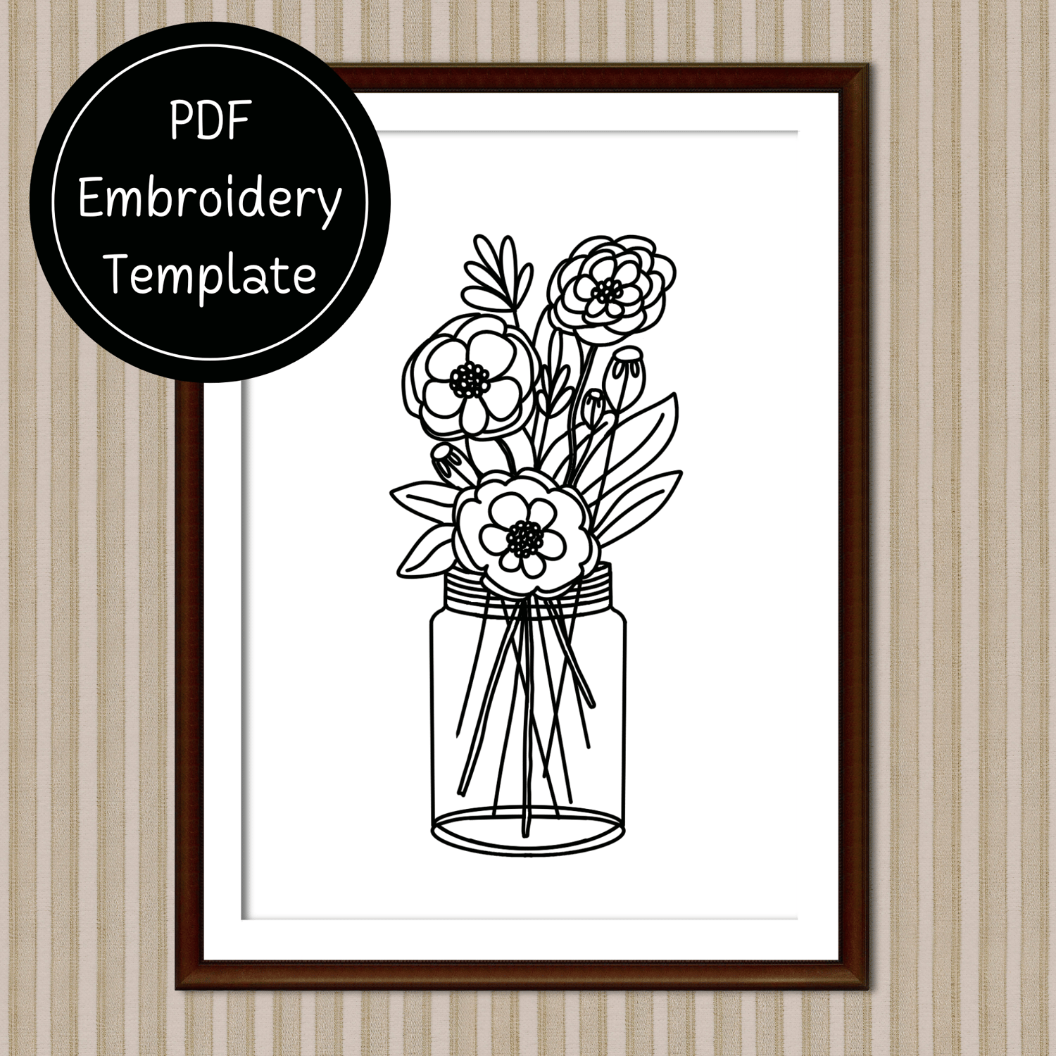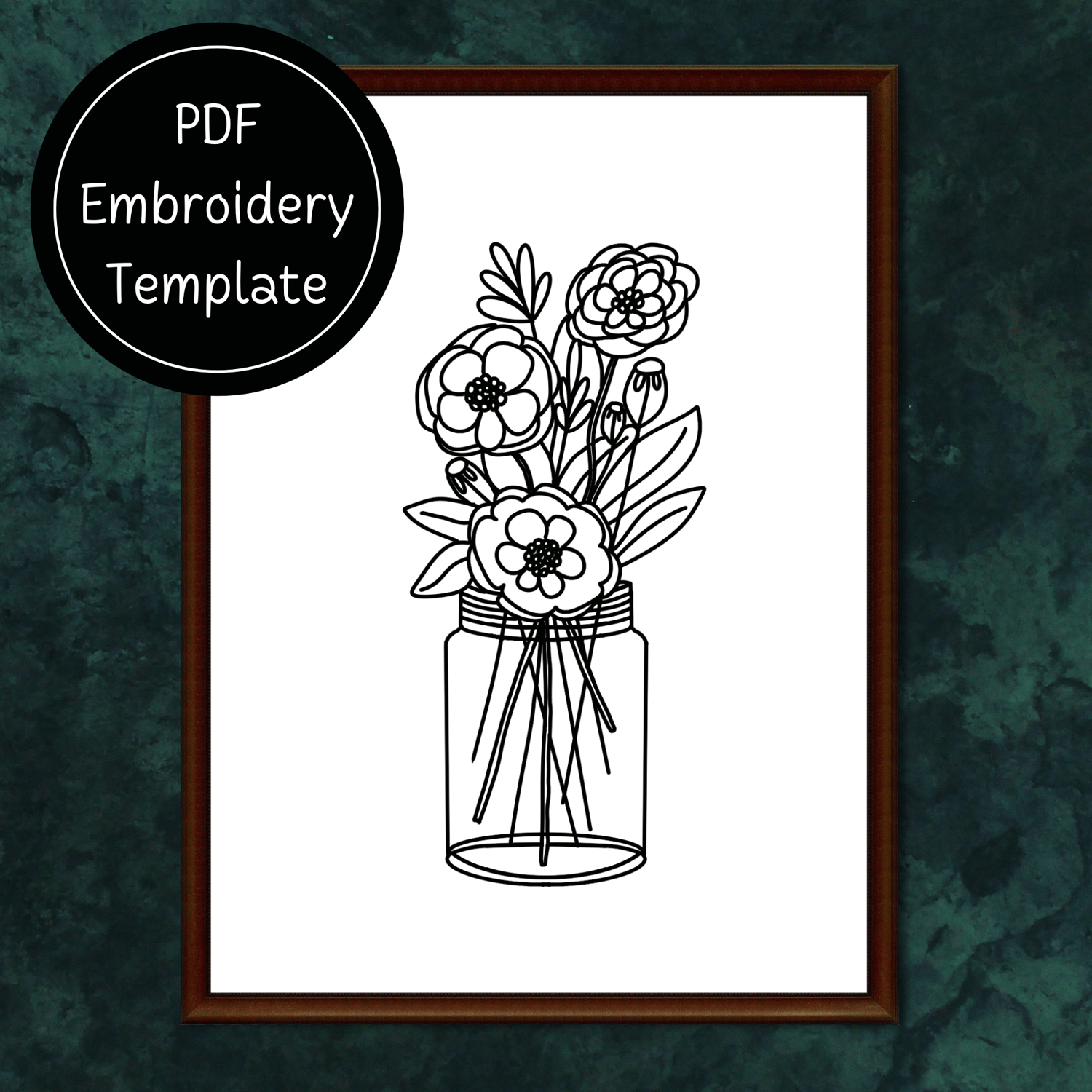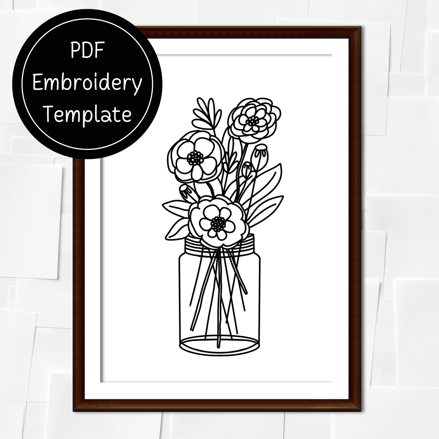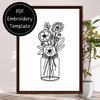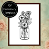 Flower Vase Jar 2 Embroidery Template PDF - DIY Flower Vase design For Hand Stitching - Instant Download