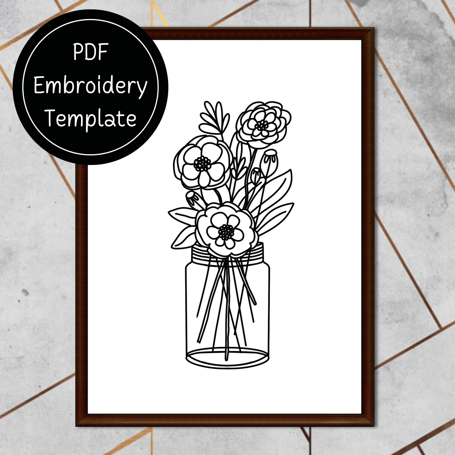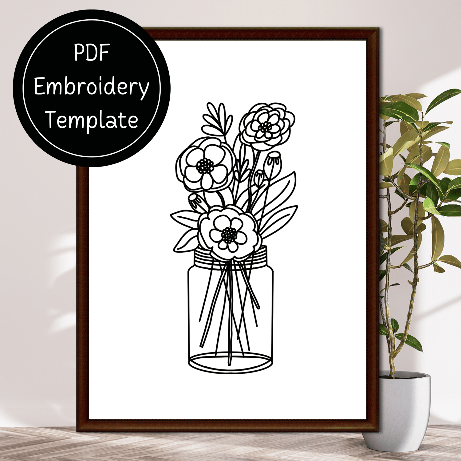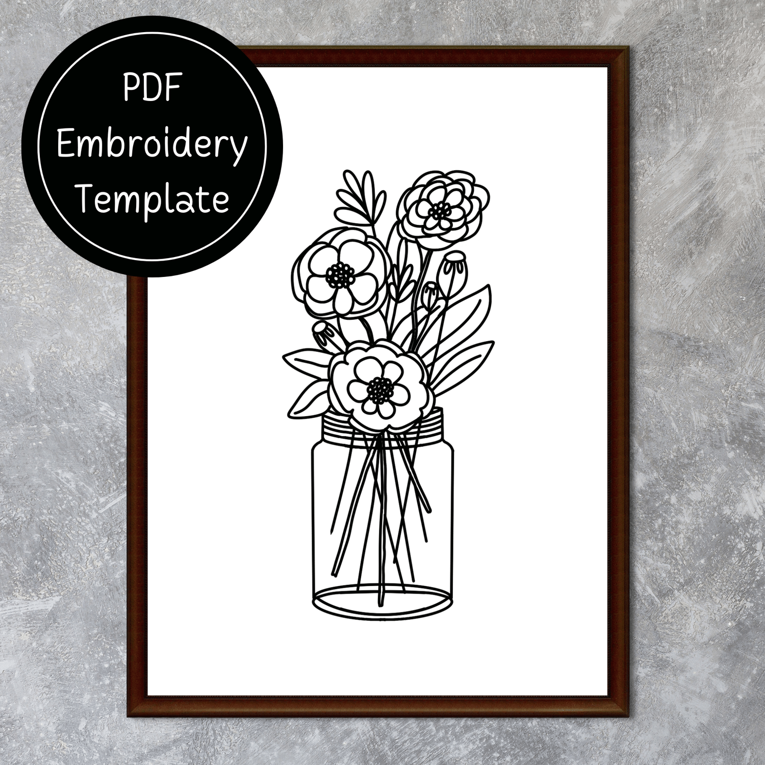 Flower Vase Jar 2 Embroidery Template PDF - DIY Flower Vase design For Hand Stitching - Instant Download