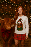 ๐ Preppy Christmas Highland Cow PNG โ Hidden Eyes Gnome Riding Cow | Luxury Holiday Sublimation Design ๐ฎ