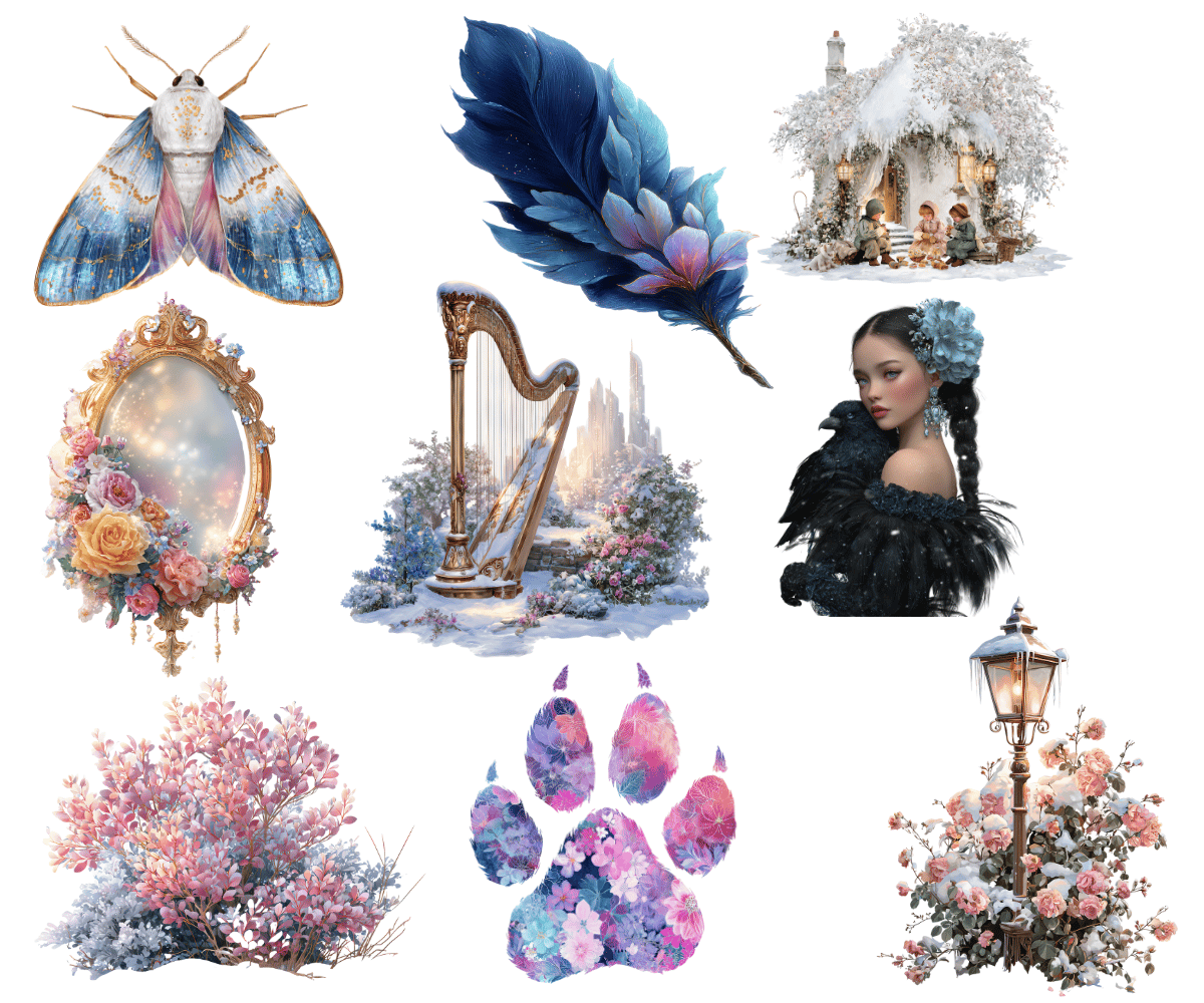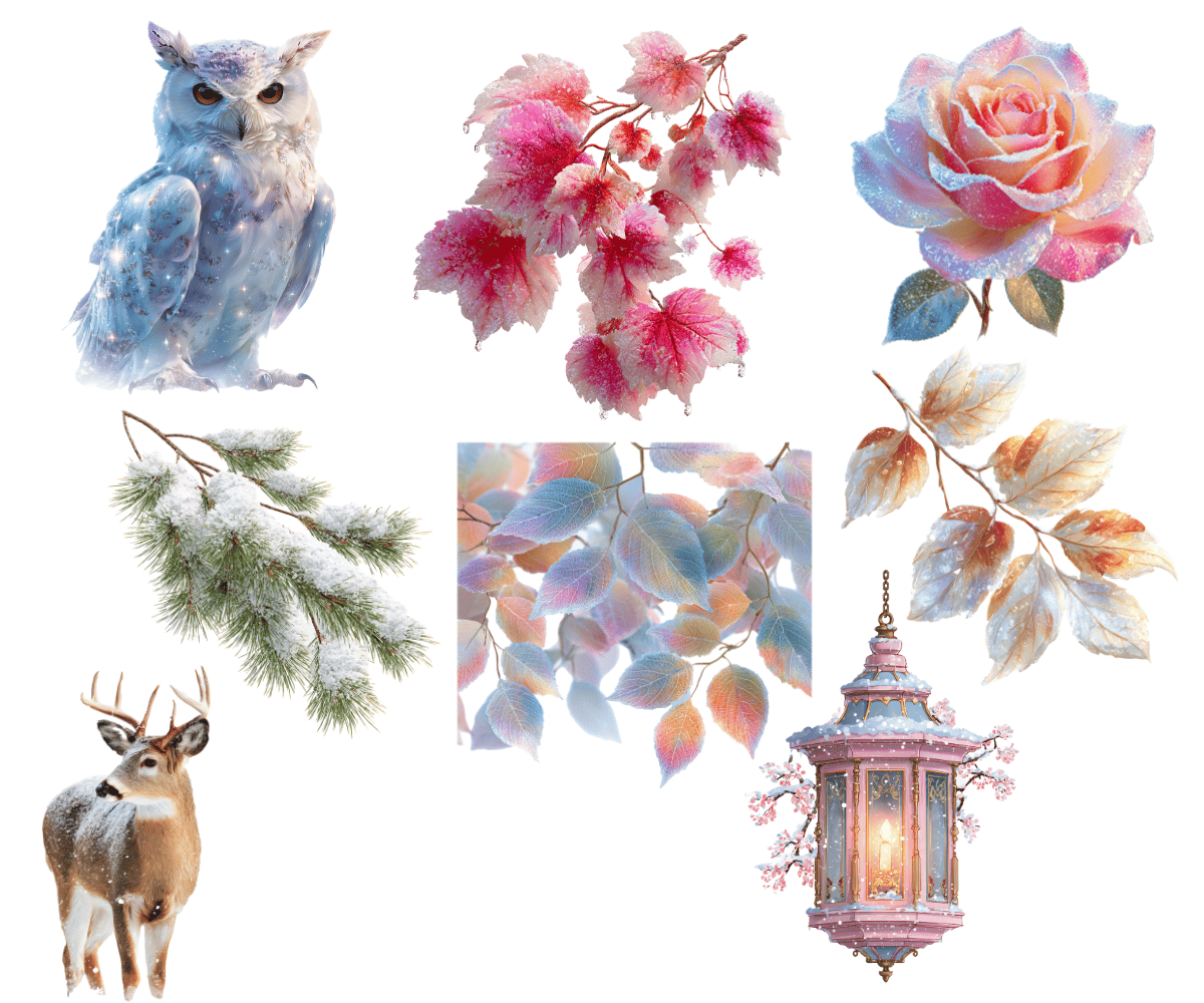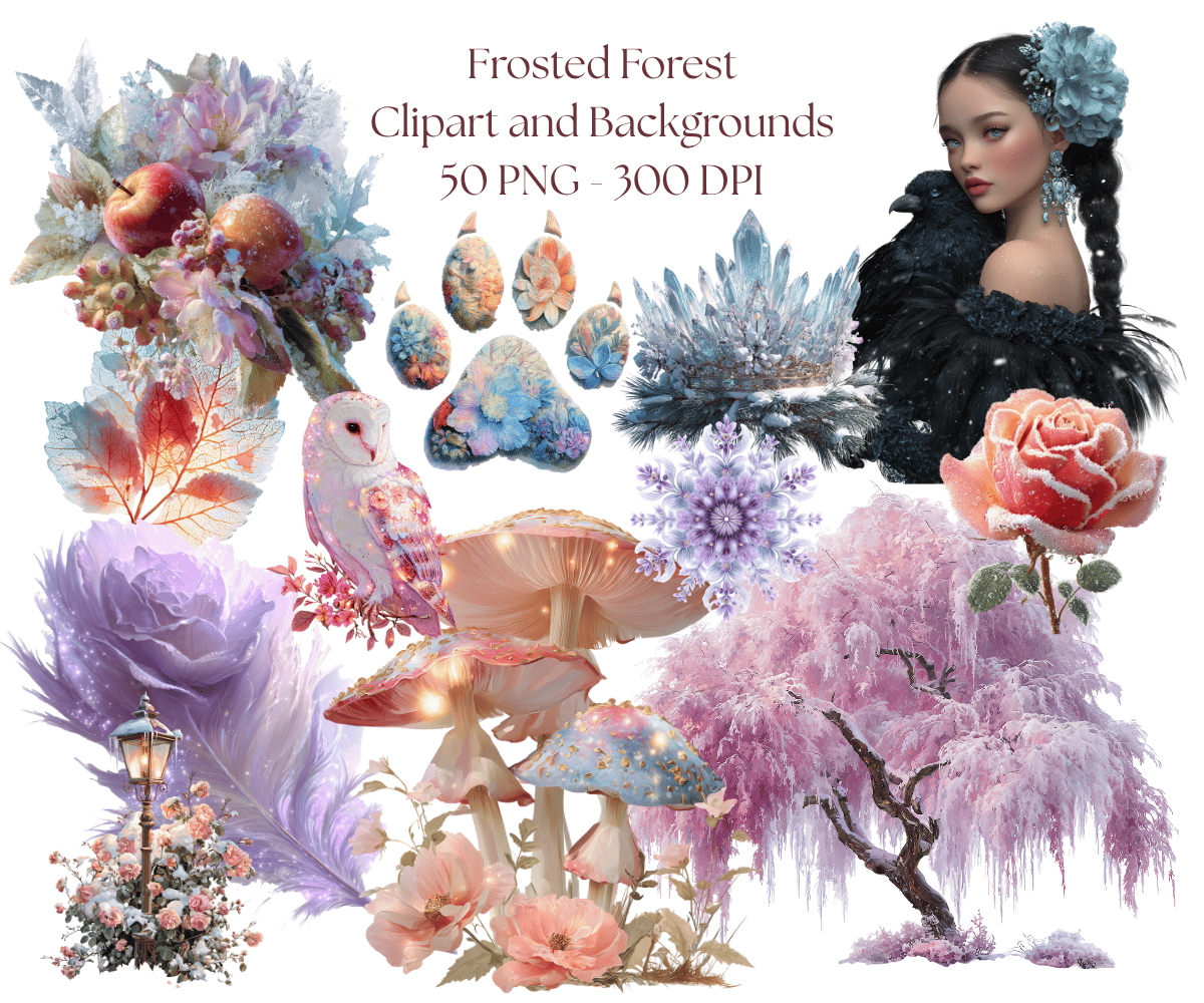 Elevate your crafting projects with our Frosted Forest Clipart and Backgrounds bundle. Perfect for instant download and sublimation design backgrounds. Backgrounds include elegantly styled papers suitable for crafting projects in gorgeous rich tones evocative of the winter aesthetic. Ideal for digital art, printable clipart, and crafting, this set is a must-have for creating charming arts and crafts designs. In fact, cut them out and place them on your planners to make for an extra special gift for an organizer.
