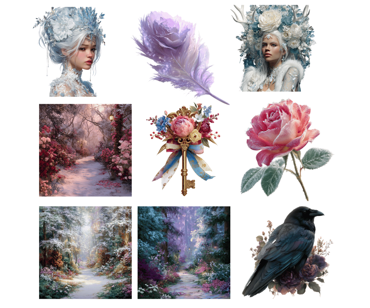 All of my work was created on AI using my own prompt formulas and commands. All images made are unique and created specifically for my shop.