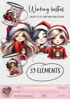 Chibi Christmas girl, winking, besties. 39 PNGs, hair, eye, skin colour options.