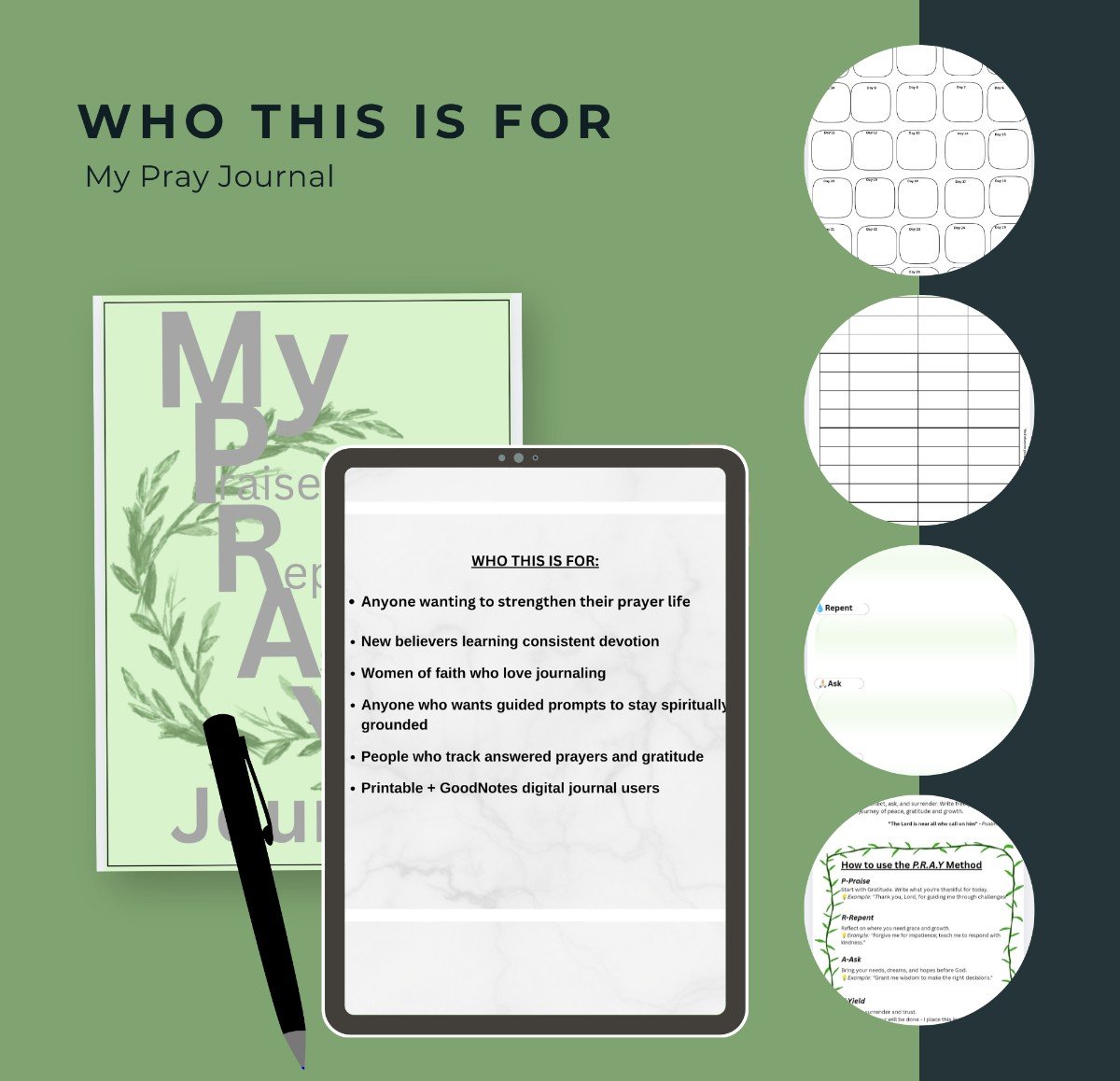If you've ever sat down to pray and felt like your mind was wandering or you didn't know where to start, the P.R.A.Y. Method is for you. This digital prayer journal provides a clear, biblical framework to help you structure your conversation with God.