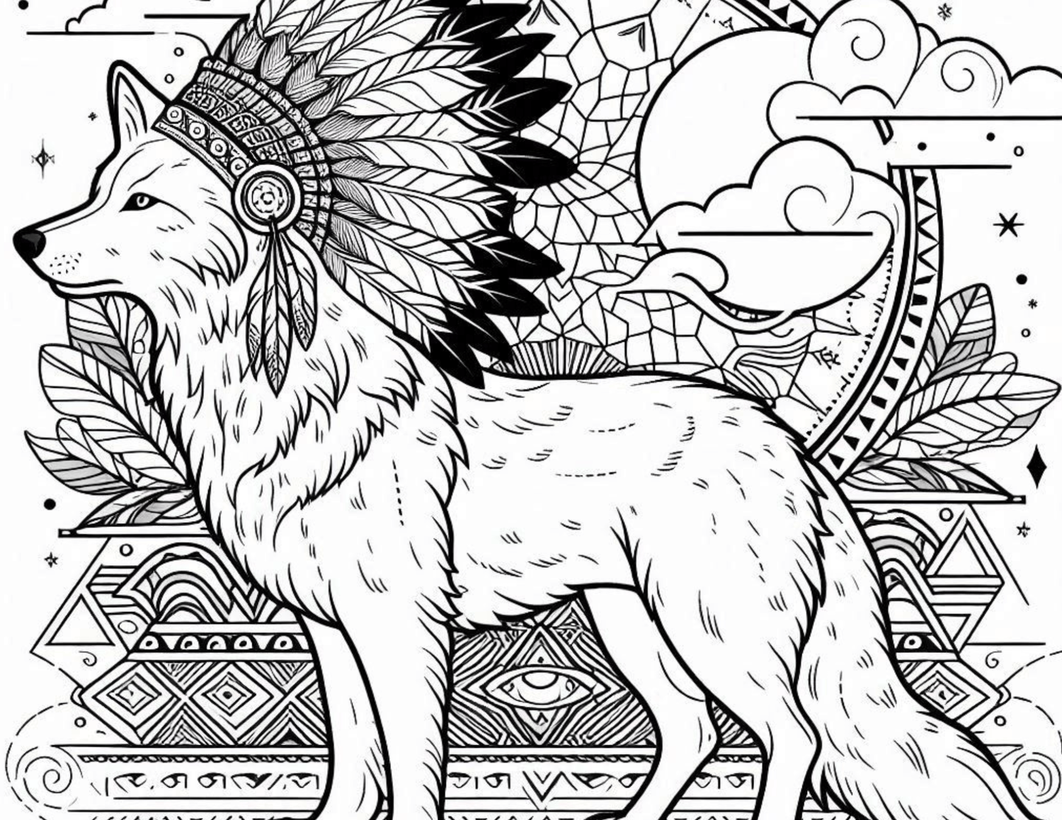 Native American Wolf Coloring Book 8 Pages
