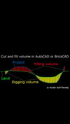 It calculates the filling and digging volumes between the project and the land surfaces. The surfaces must be 3DFACE or 3DMESH entities (created with variable MESHTYPE set to 0), having different colors between project and land.