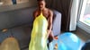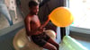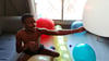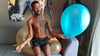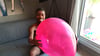 During 5 minutes The cute twink Ashton burst giant balloons with his knife.