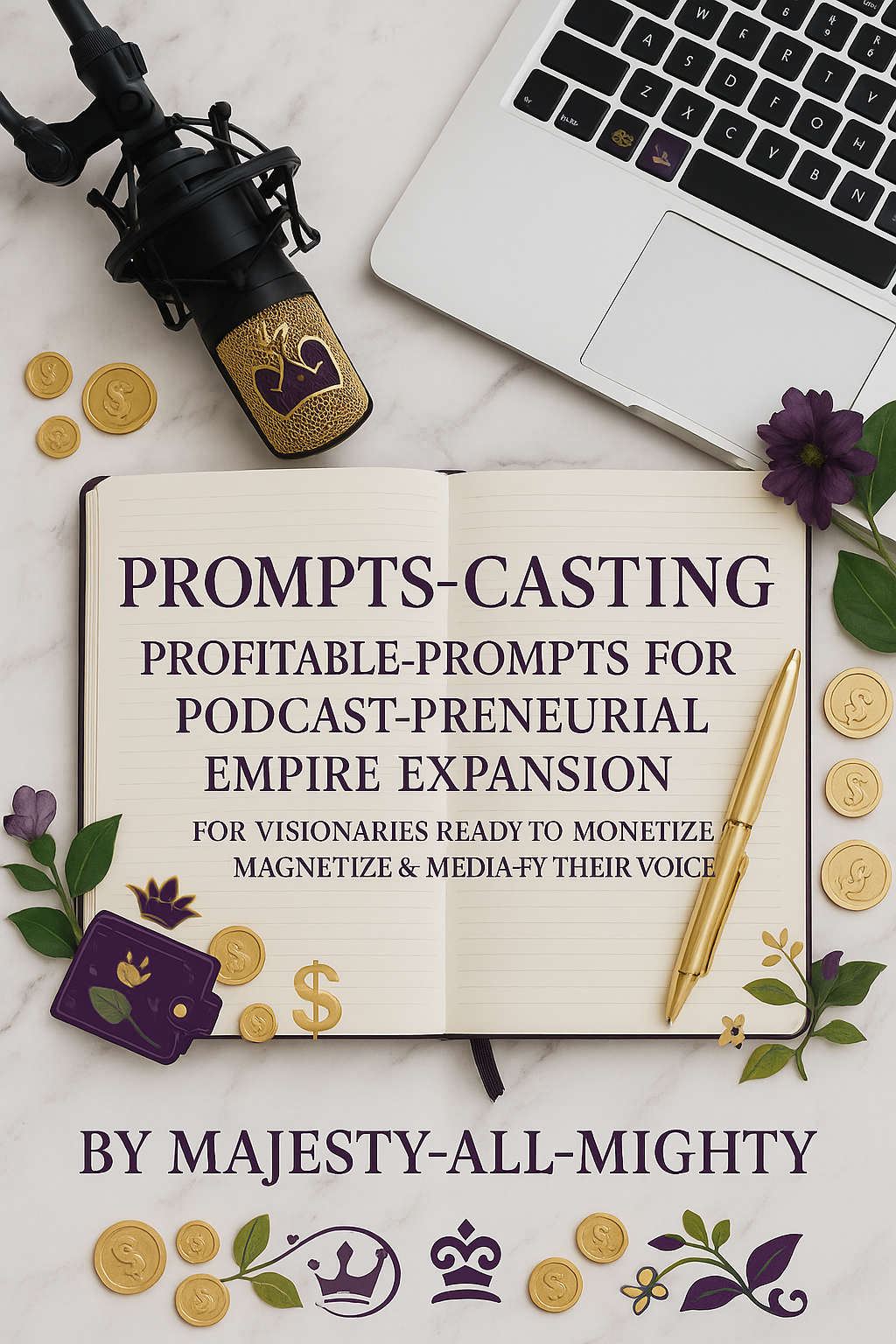 Whether you're just launching your first podcast or looking to power-up your profitable presence, PROMPTS-CASTING delivers a vault of visionary prompts designed to help you monetize, magnetize, and media-fy your voice.