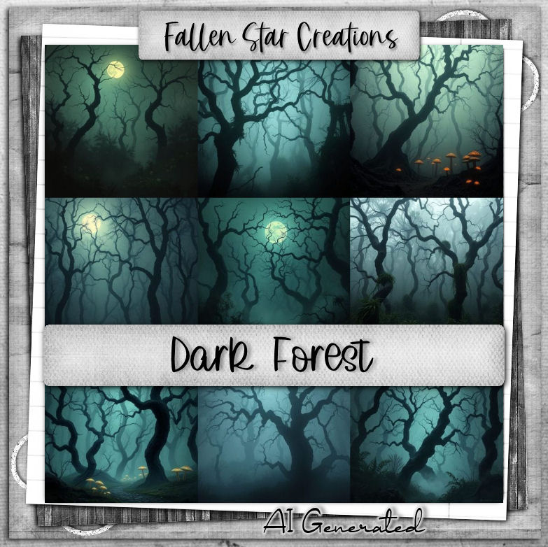 Nine tagger-size, dark forest patterned papers. Use them as is, or layer them onto other papers to make them unique.