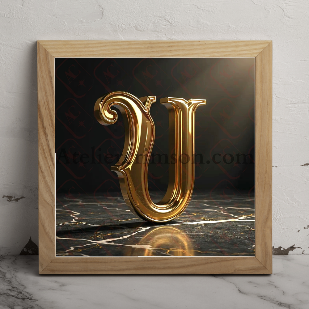 The letter U Gold victorian marble Download Now and elevate your space with our stunning AI-generated characters, featuring a luxurious metallic finish. Each character boasts a stunning three-dimensional appearance with intricate details. The elegant textured floor adds a touch of luxury, making this a truly unique and eye-catching piece. Perfect for a luxurious touch in your interior.