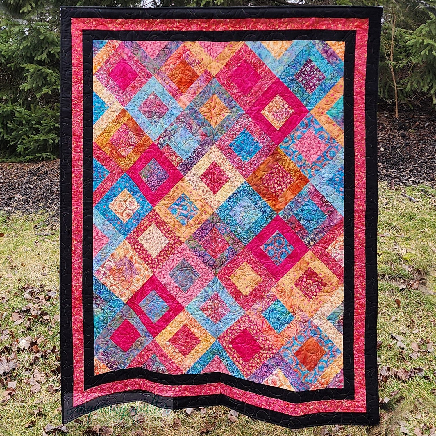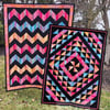 Sizes: Brickyard (Crib, Lap, Twin, Queen, King), Charlotte (Double, bonus quilt is Twin), Forest (Lap, Double, Queen), Squared (Twin, Double, Queen), Stepping Stones (Crib, Lap, Twin, Queen, King)