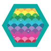 The pattern comes in a range of sizes so that you can mix and match with feature fabrics. The hexie templates come in 3", 4", 4.5", 5", 6" and 7". Pretty much a hexie to fit just about any fabric you love (except maybe those really giant feature fabrics ;) ).