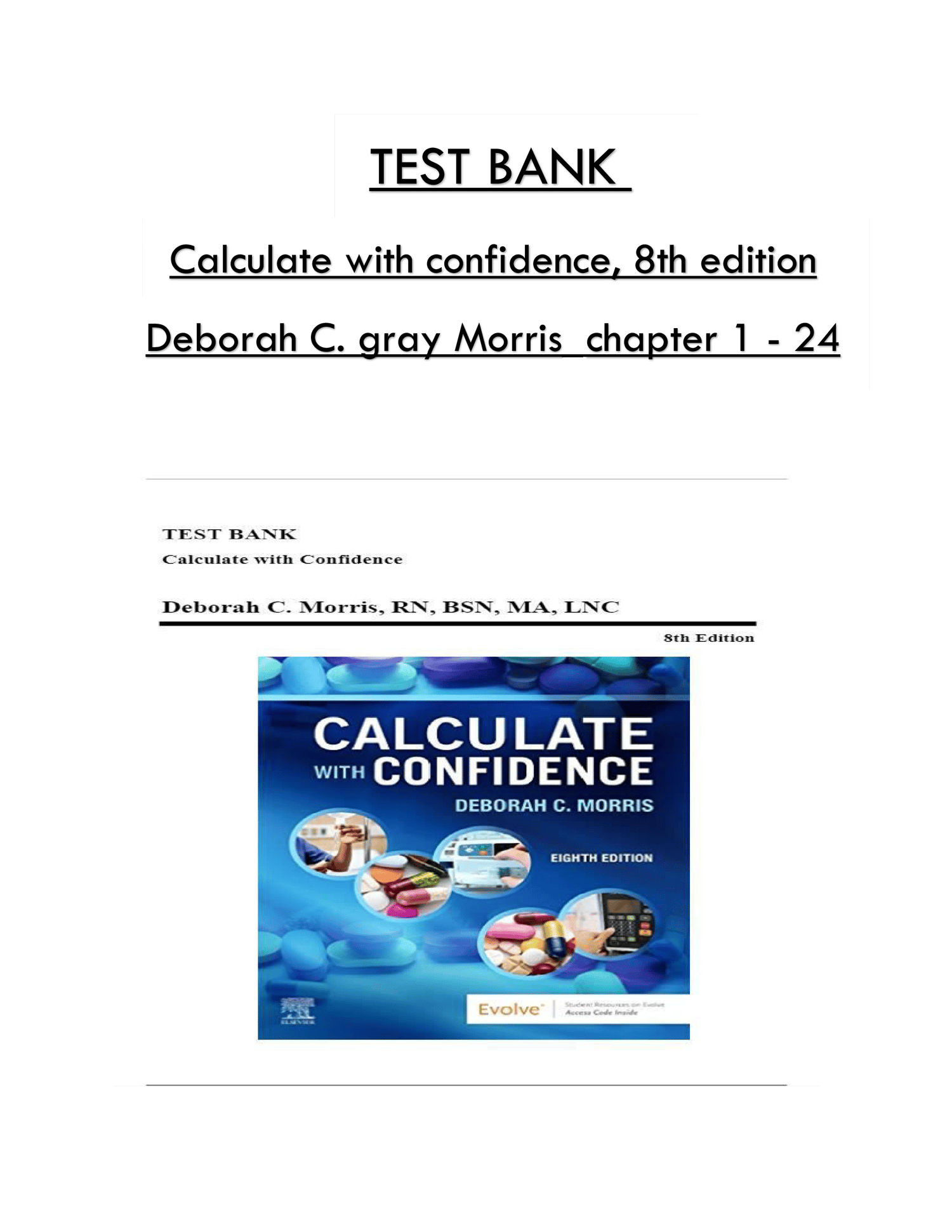 test bank Calculate with Confidence 8th Edition PDF, Deborah C. Gray Morris dosage calculation test bank, nursing math calculation test bank PDF, calculate with confidence 8th edition test bank chapters 1–24, NCLEX dosage calculation practice questions PDF, drug dosage calculations nursing test bank PDF, Deborah Morris test bank medication math PDF, dosage and IV calculation nursing test bank download, nursing pharmacology math test bank 8th edition, safe medication calculation test bank PDF