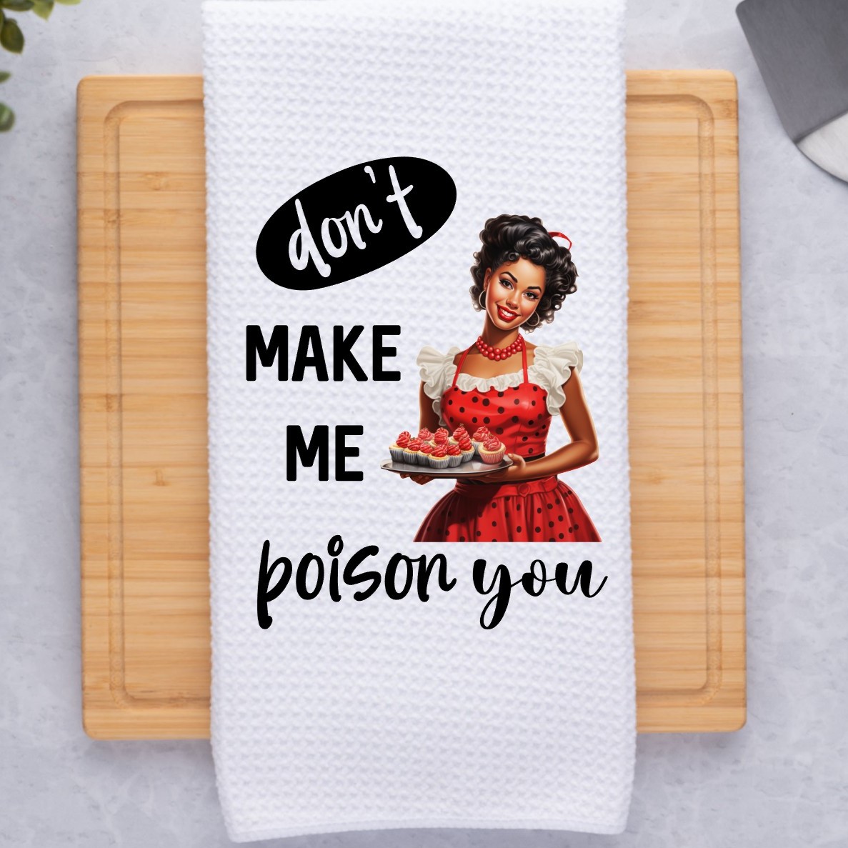 Don't Make Me Poison You African American Retro Housewife Funny Sarcastic Kitchen Dish Towel