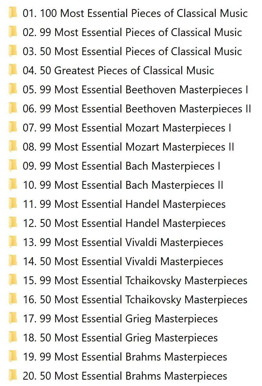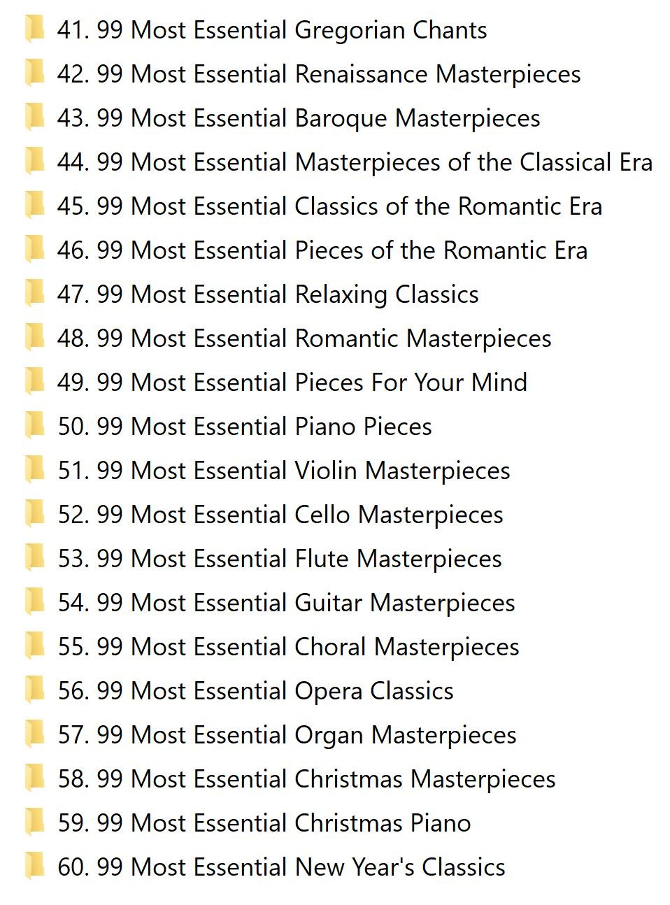Tracks: 6,147 [50 (16). 99 (53) or 100 (1) per album]