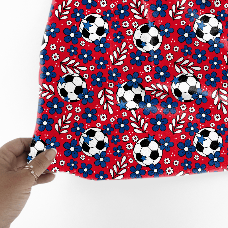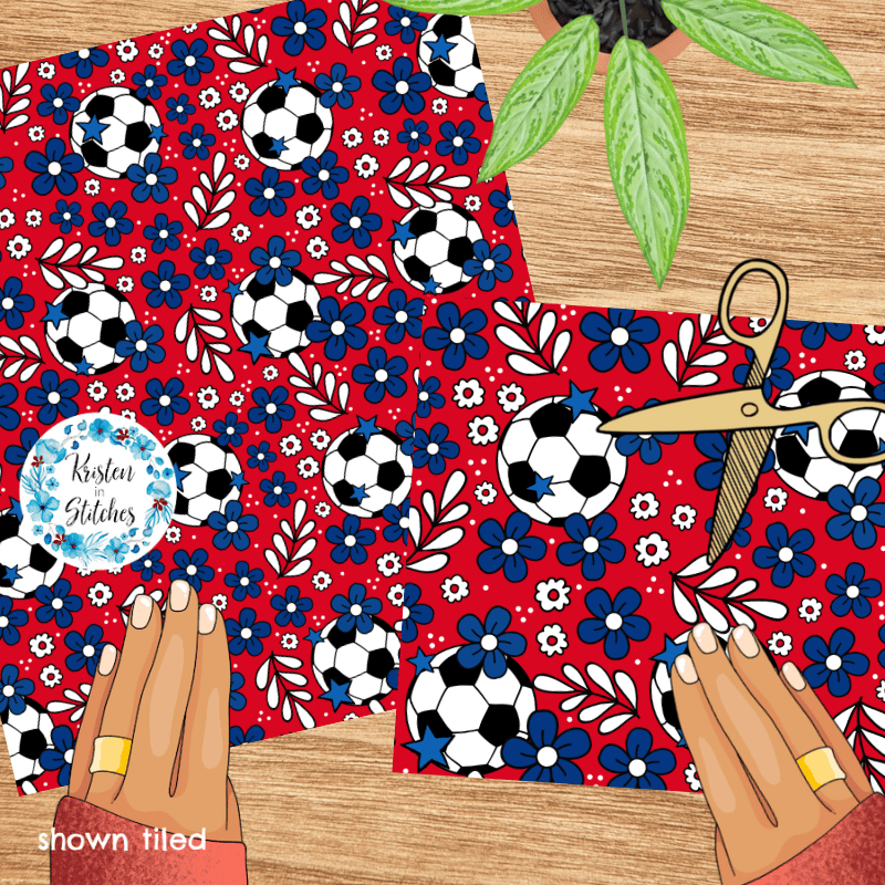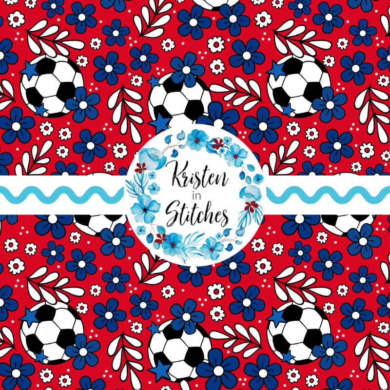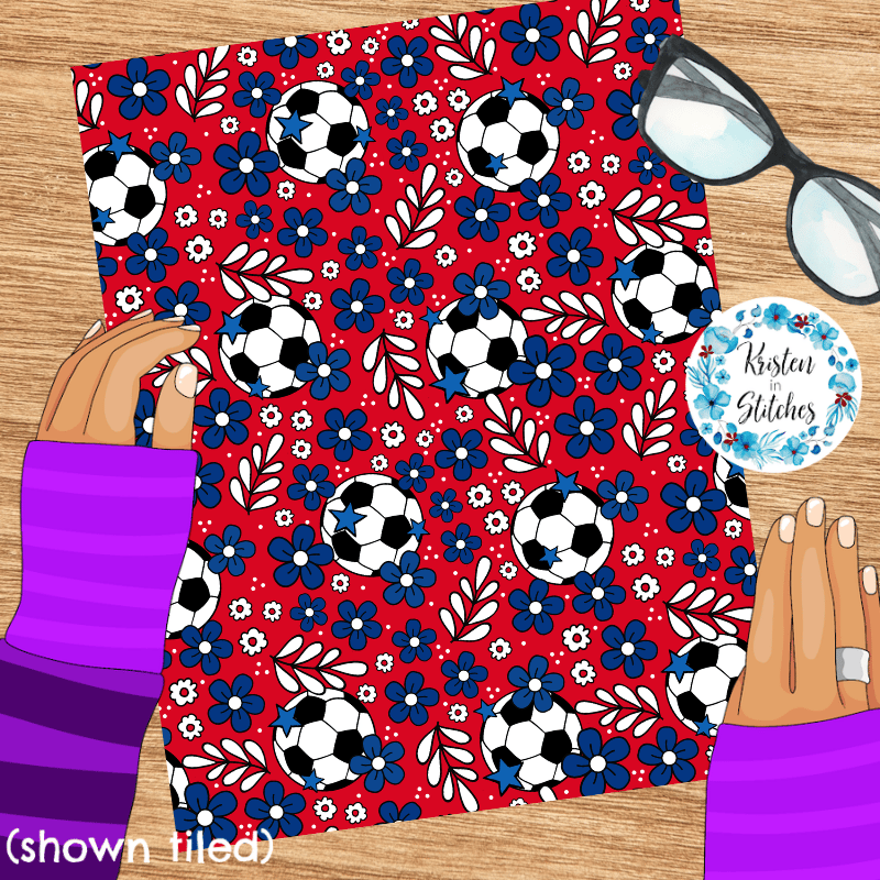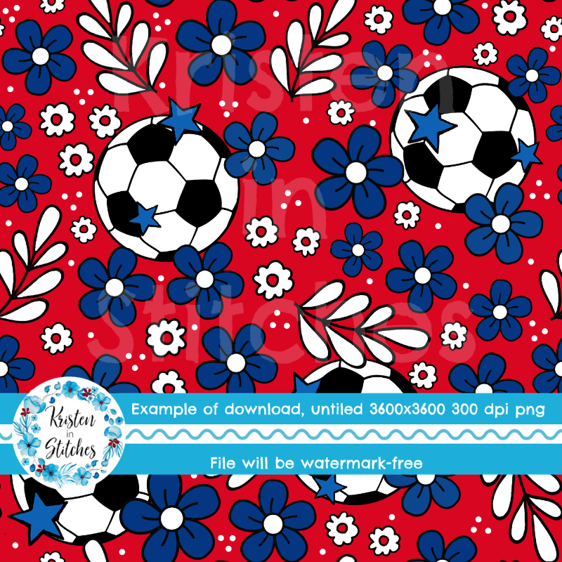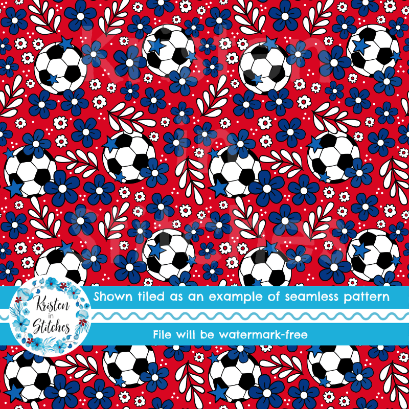 Soccer Floral Seamless Pattern, Red White Blue Team Colors