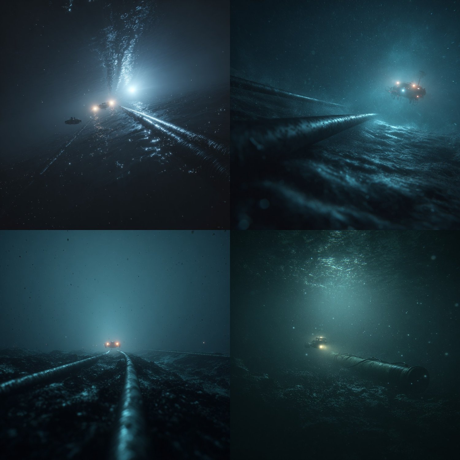 Deep Sea Submarine Cable — Cinematic Underwater Tension Midjourney Prompt