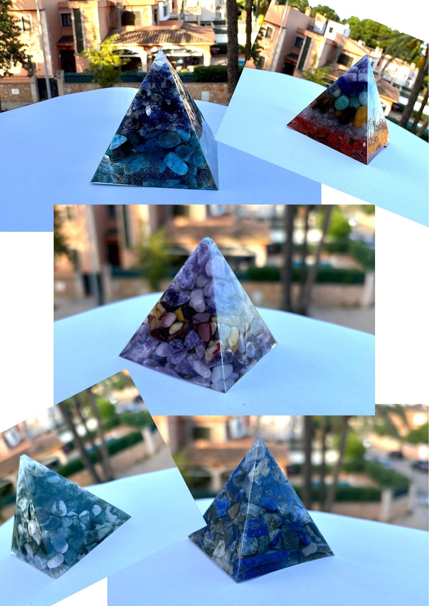 Ein Orgonit ist eine Art Pyramide, gefüllt mit Edelsteinen zu den jeweiligen Themen. Er besteht aus Epoxidharz und es daher sehr beständig!