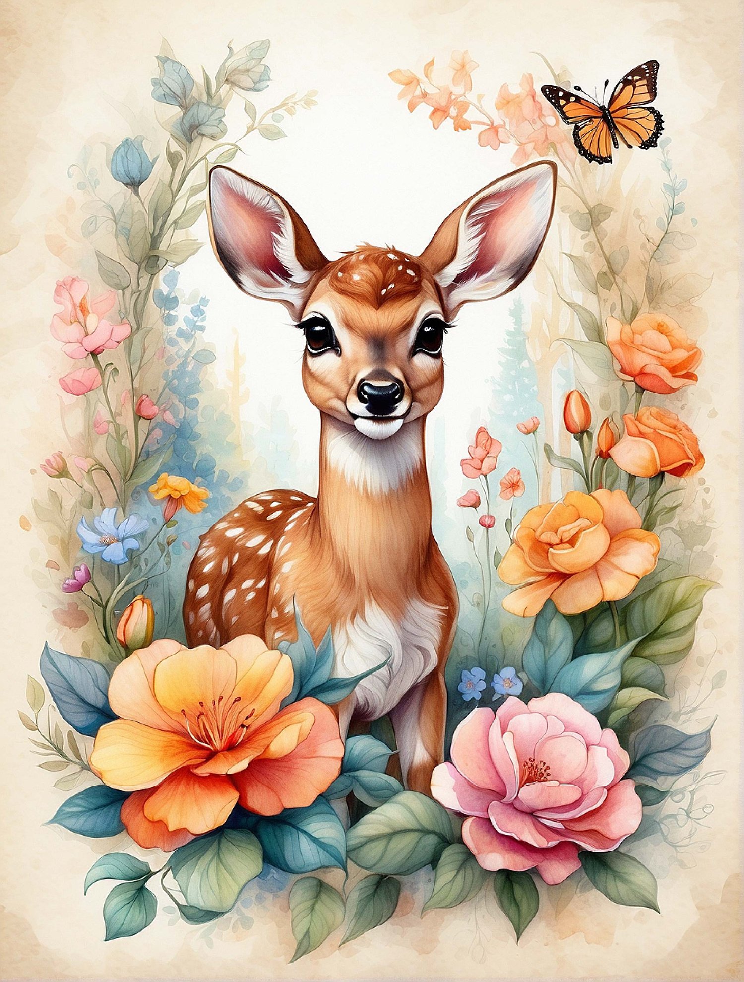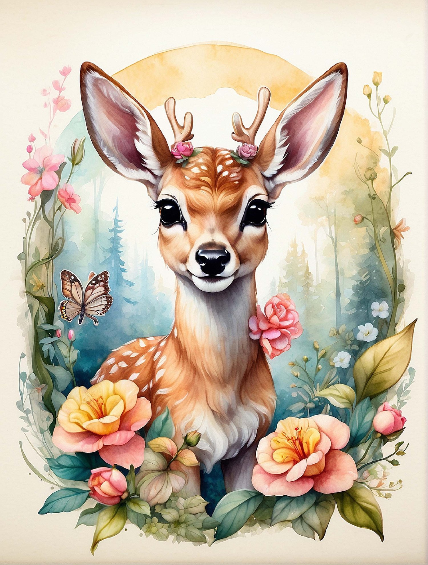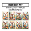 Bring charm and whimsy to your projects with the "Deer Blooming Paradise Clip Art Bundle." This delightful set includes 8 high-quality JPG images featuring the adorable Deer surrounded by lush watercolor flowers and playful butterflies. Perfect for scrapbooking, card-making, invitations, or adding a serene touch to digital designs. Please note that images have a white background and not a transparent background.