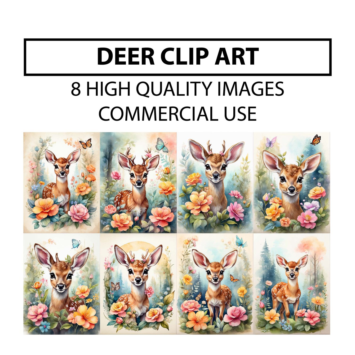 Deer Clip Art Designs - 8 High-Quality JPGs Bundle, Watercolor Digital Prints, Wall Art, Commercial Use