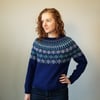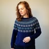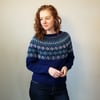 Rendezvous with Rauma is worked top-down and in the round. Two sets of short rows shape the neckline before the colourwork starts. After the yoke divide, a small chart is worked on the body and the remainder is completed in stocking stitch. The sleeves are put on hold while the body is worked, then worked last from the top-down, with the same chart as the body worked on the upper sleeve before shaping is started.