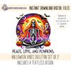 Zen Skeleton Halloween Designs Set – 2 Designs Featuring Peace, Love & Pumpkins | JPEG & PNG | Perfect for T-Shirts & Sublimation | Commercial Licence