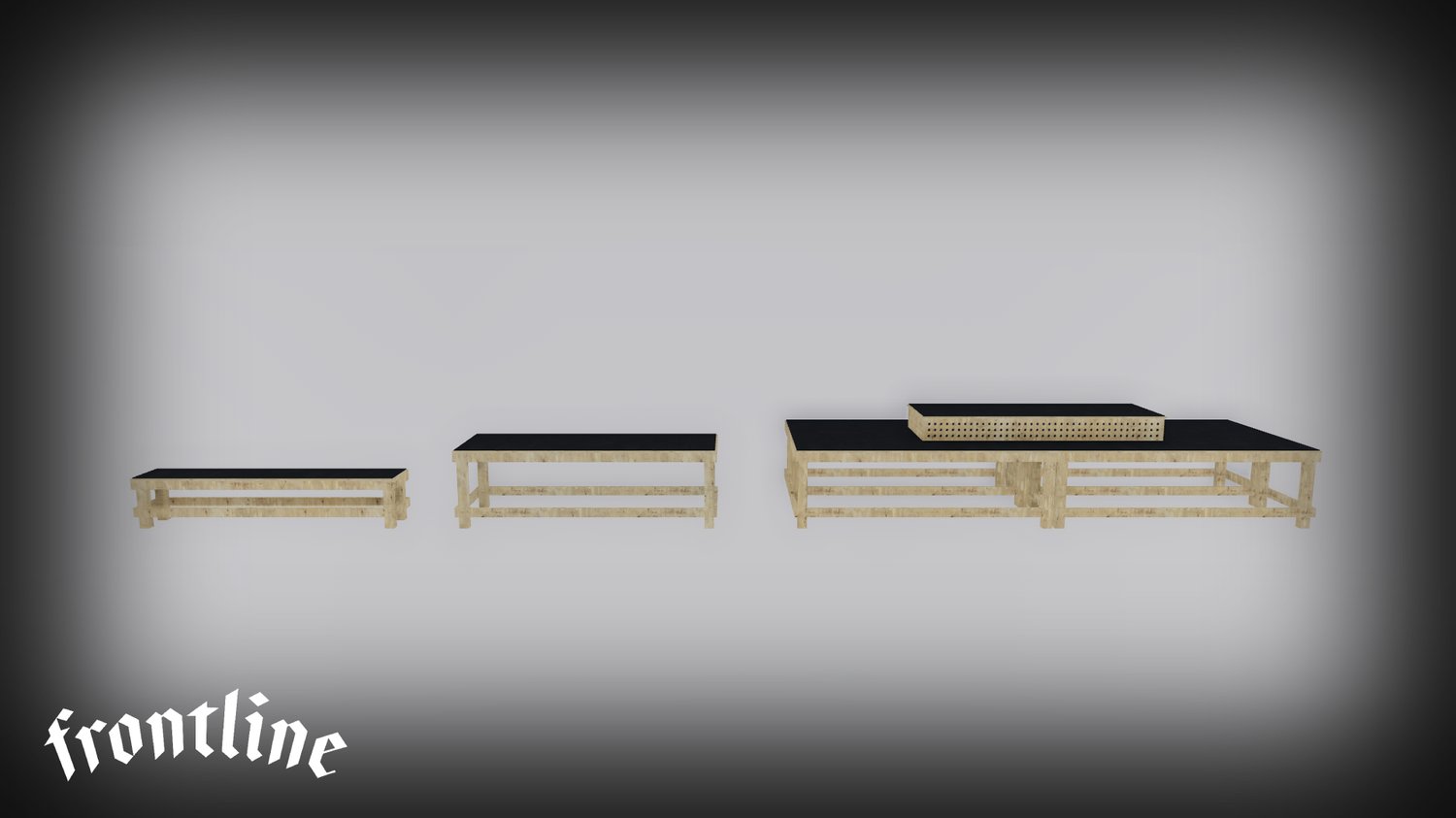 Multiple workbenches including: Gear Table, Work Table, Work Bench