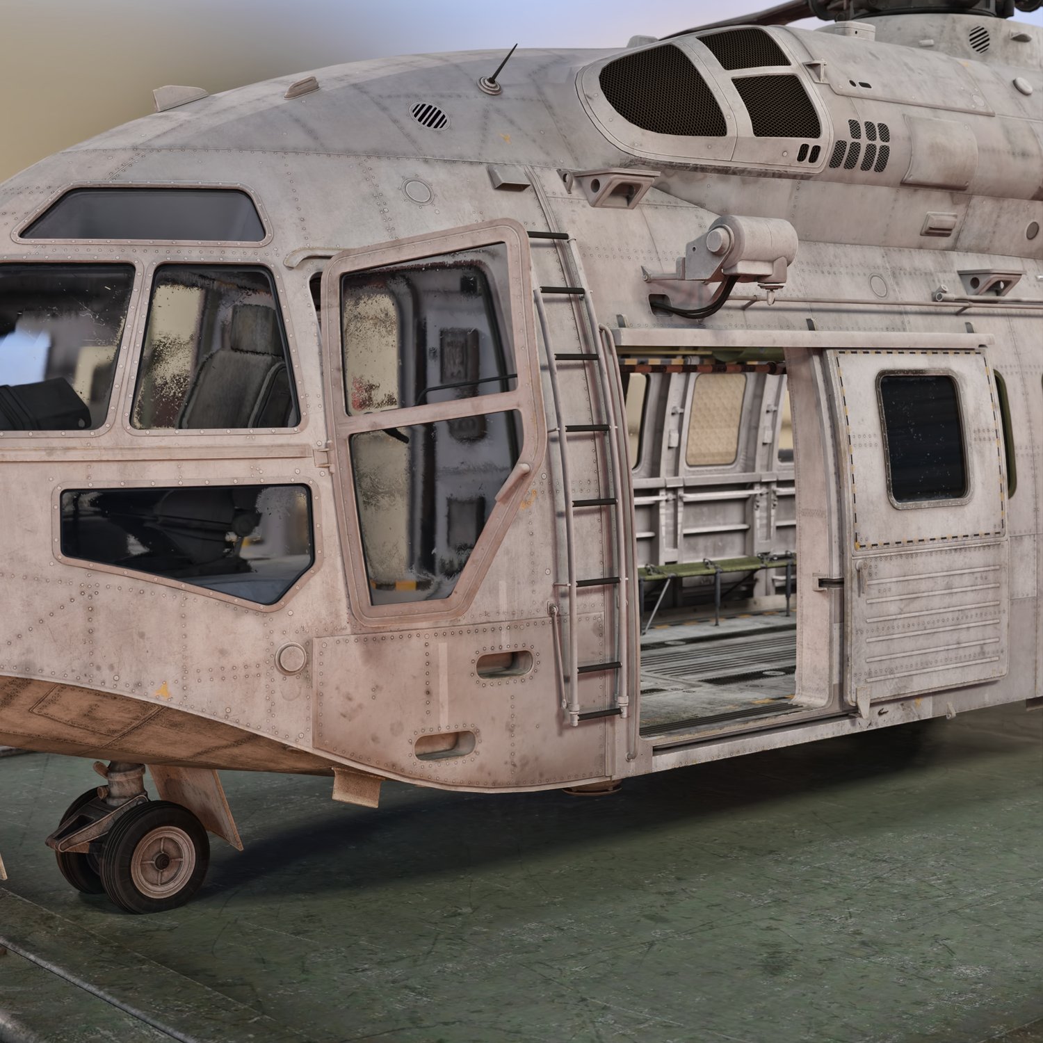 A very useful cargo and military transportation helicopter with multiple rigged parts, for your special operations people and military support. Strategically significant and cool looking. Converted and rigged for use in DAZ. Can be used with closed or open doors- there are multiple choices for you to make. Rear hatch is also rigged for more realistic pictures.