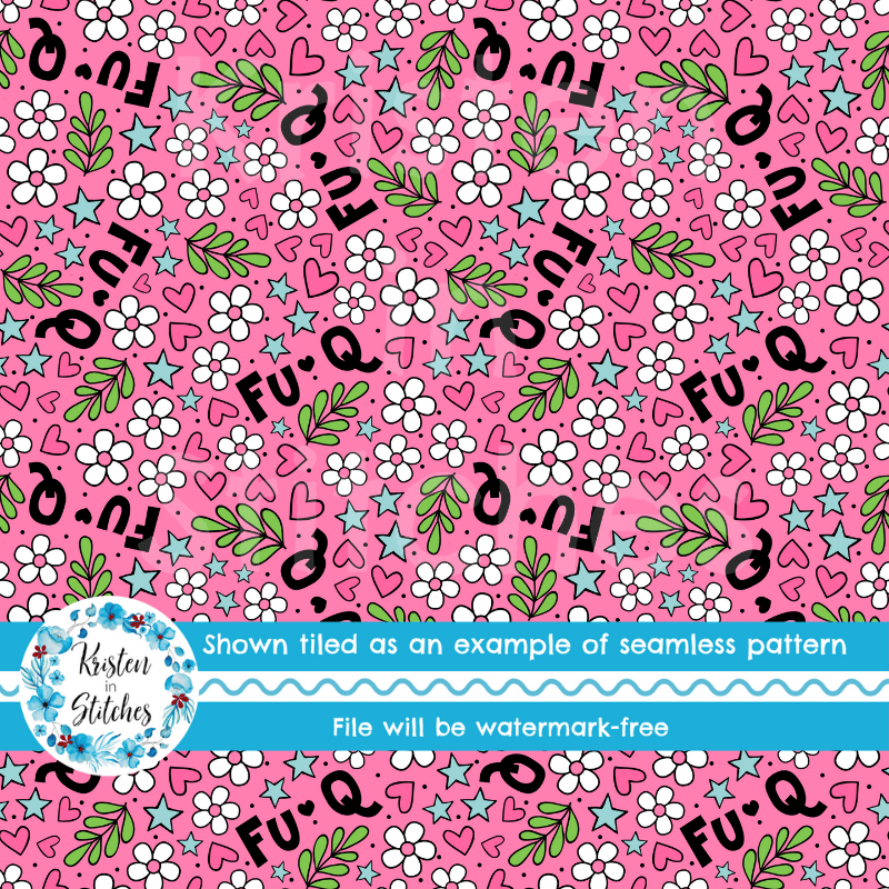 Fu-Q Sarcastic Floral Seamless Pattern, Sassy Words, Pink