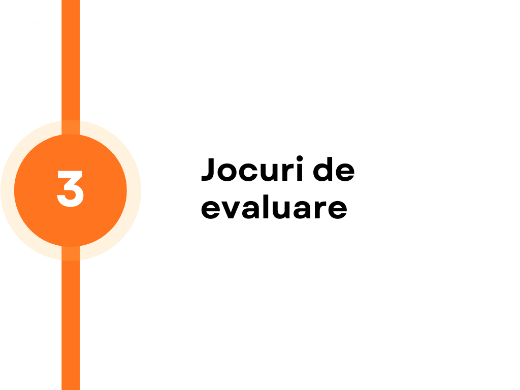 ✓ 11 jocuri de evaluare a câte 10 cerințe fiecare cu răspunsuri multiple;