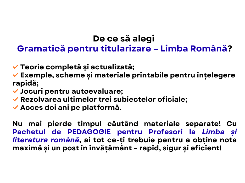 ✓ Rezolvarea utimelor trei subiecte oficiale de titularizare (partea de pedagogie);