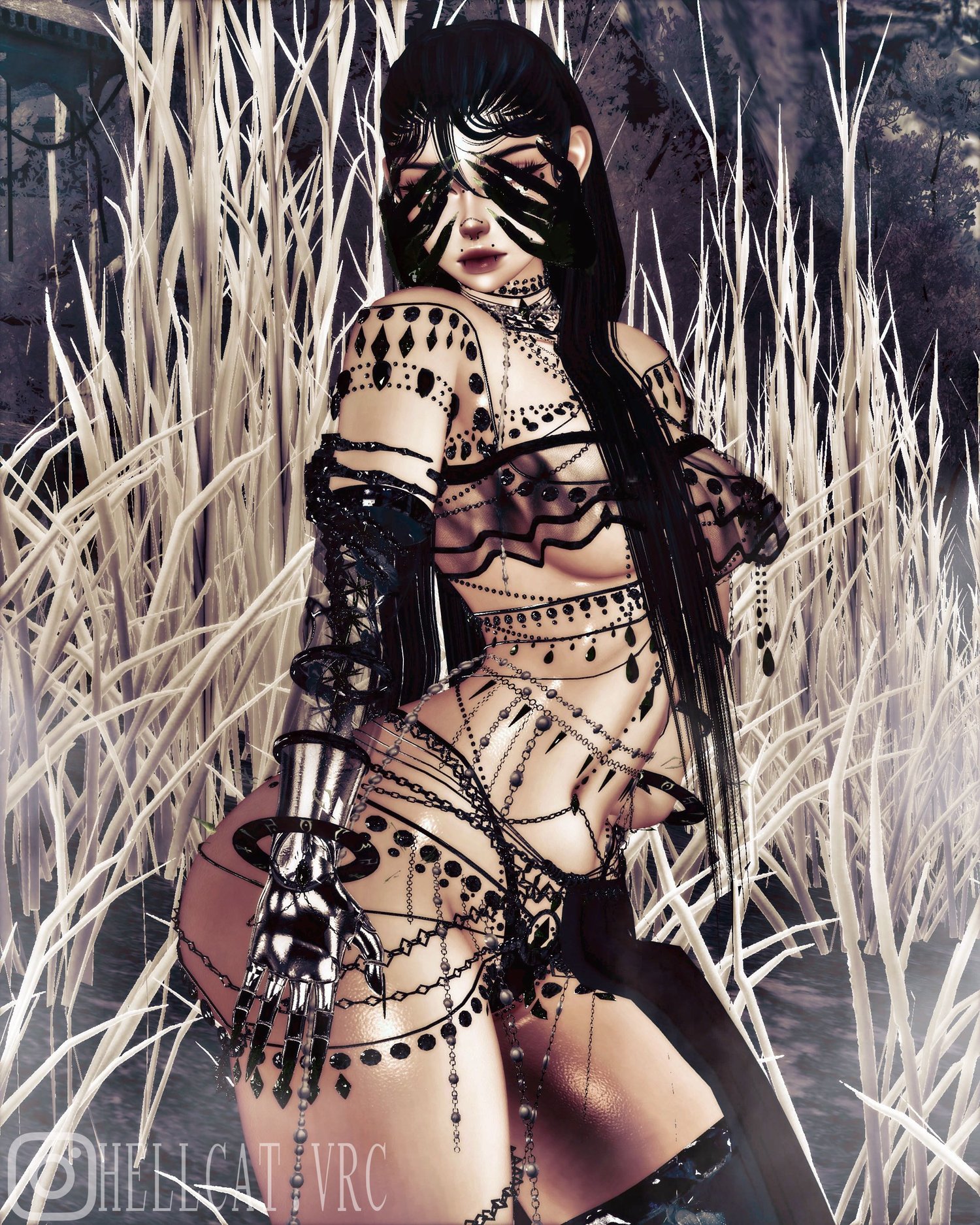 Body, Glass Limbs: zinpia / Body & Head Texture: ying.vr & yang.vr / Head, Long Hair, Short Hair, Wavy Hair, Heels, Panties: nessyy. / Eye Texture, Demon Limb Set: gm / Anubis Mask, Horns, Metal Mask: starkotic / Pearl Heels, Pearl Choker, Waist Pearls: compelledink / Earrings, Face Jewels, Jewel Mask, Body Chain, Piercings: lovecrusty / Sheer Top: lokivanity / Ponytail: vampidoll / Halo: jinxiewinks / Bodysuit: svlt / Skirt: xero3d / Rune Bracelets: daddyissuez / Arm Chain: zeffyr / Skelly Chain: formularats / Belly Chain: milkymutt / Chest & Waist Harness: eggly69 / Photos: MeltedSlushie, Absiske, & Hellcat / Toggle Showcase, Tattoos, Leg Chain, Pasties, Jewel Tassels: marechan