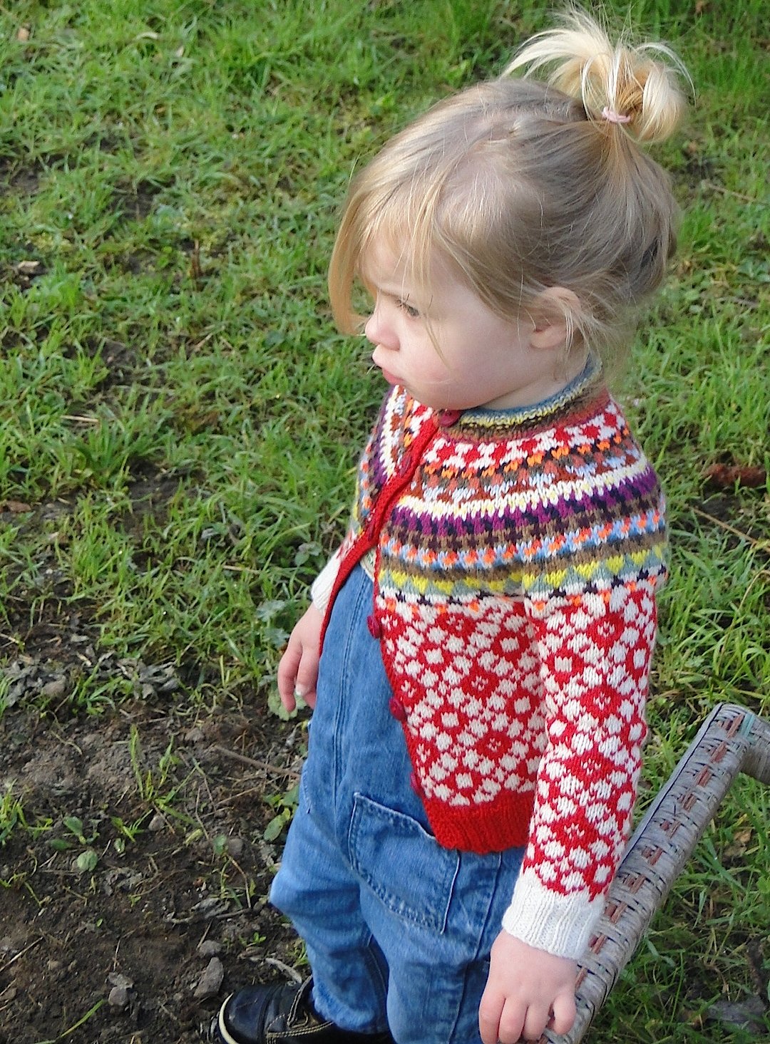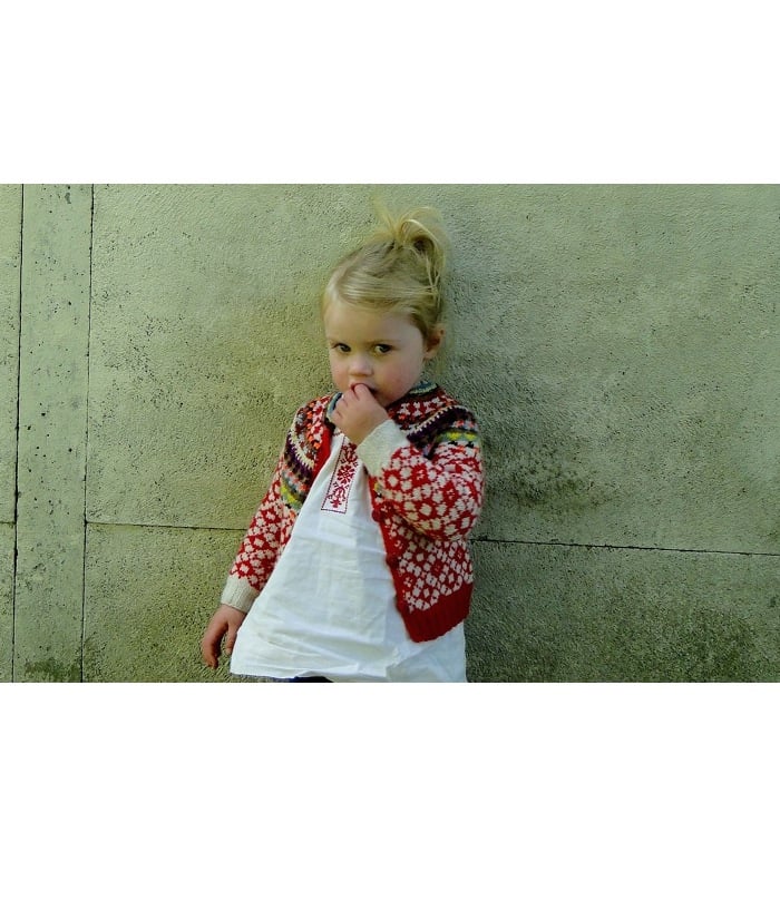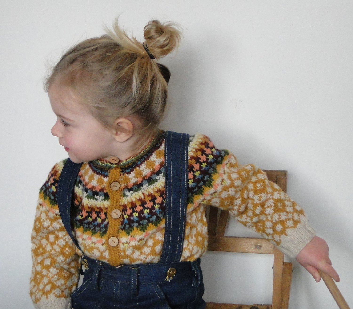 Knitting instructions to knit your own Noomi cardigan in sizes 1-8 years.