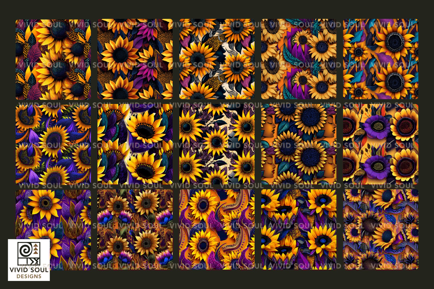 This radiant 19-pattern bundle was born from a heartfelt customer request—and we delivered with bold, joyful elegance. "Sunflowers for Marylyn" features 15 beautifully crafted seamless sunflower patterns paired with 4 exclusive bonus designs, all bursting with Afrocentric flair, vivid colors, and hand-drawn detail.
