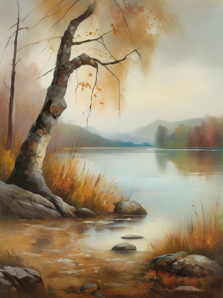 Autumn Lake,Forest Lake, Vintage Oil Painting, Farmhouse Wall Decorations, Antique Landscape, Vintage Landscape Oil Painting.#Printable_wall_art