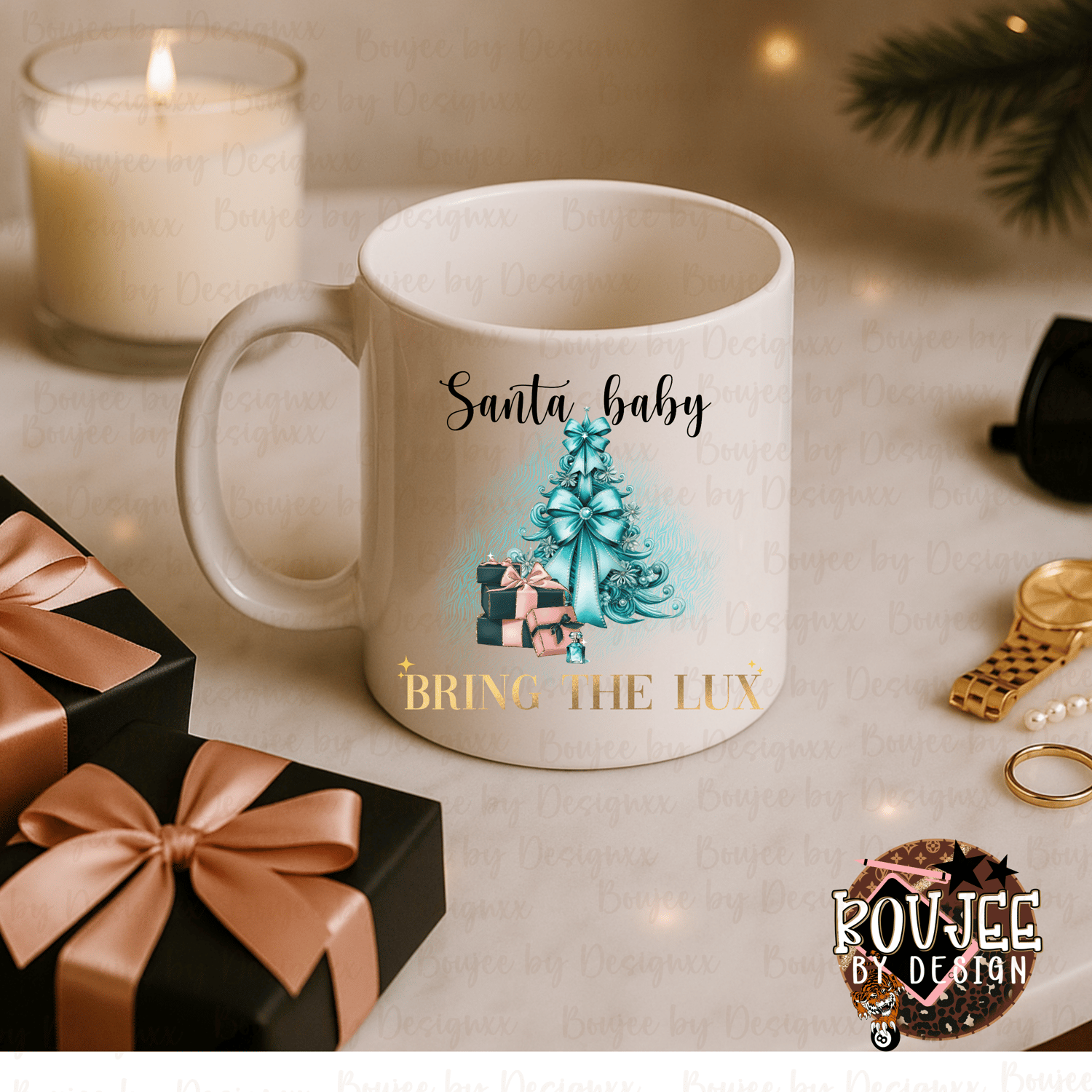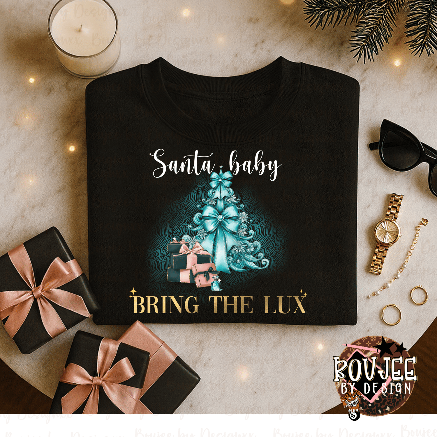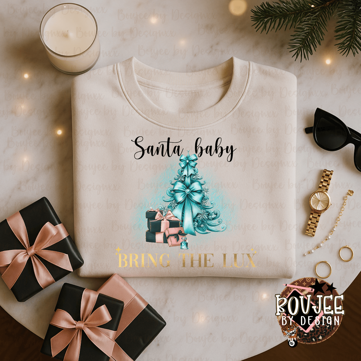 boujee christmas png, santa baby png, bring the lux design, glam christmas sublimation, teal bow tree png, gold foil text png, christmas sweatshirt design, trendy holiday clipart, boujee christmas bundle