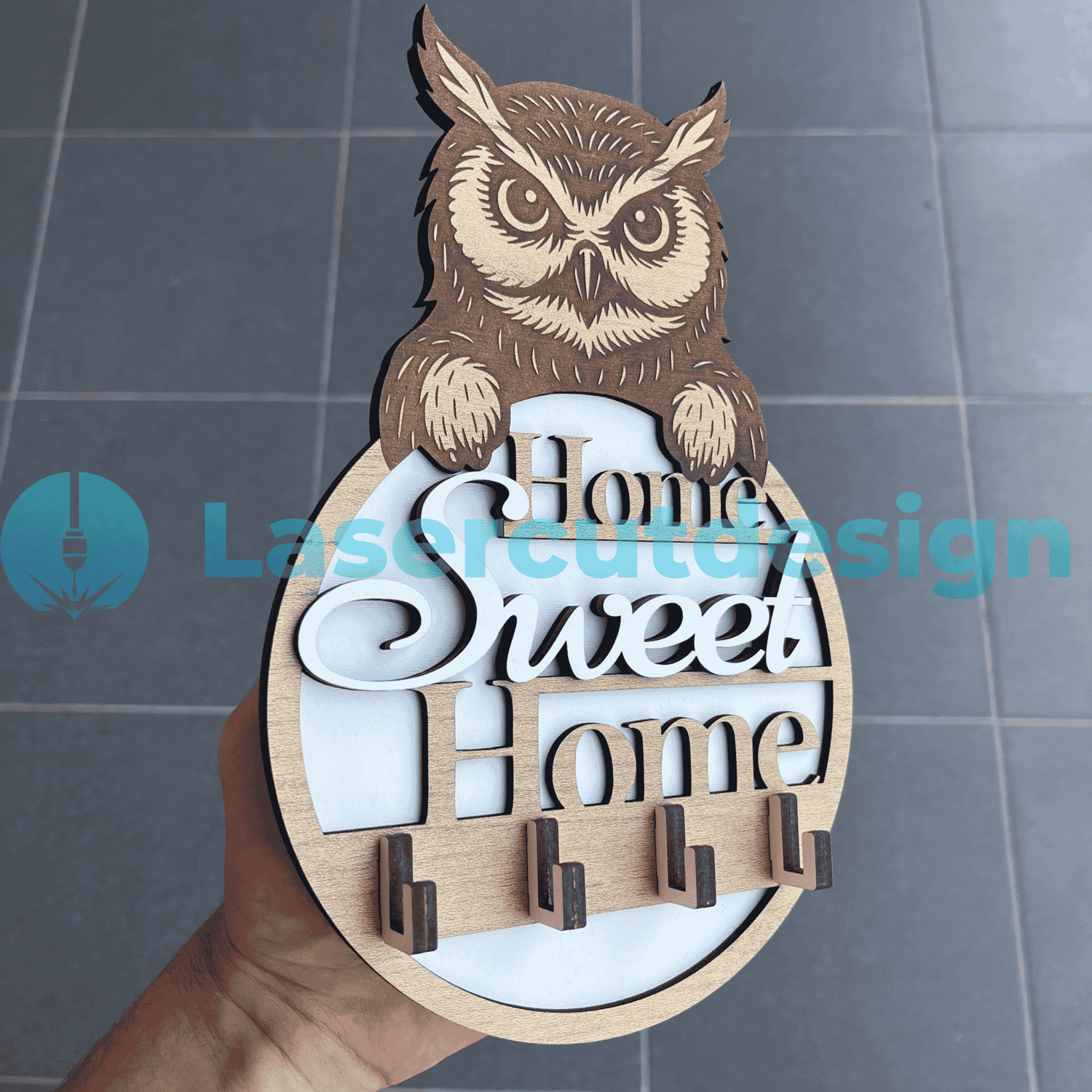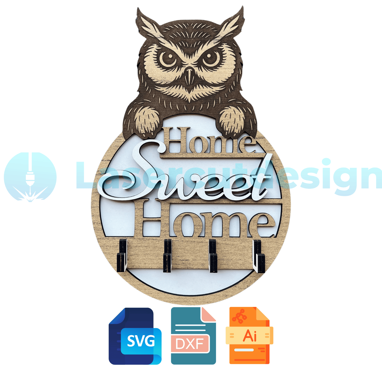 Owl Wall Key Holder SVG – Home Sweet Home Laser Cut File – Pet Decor DXF Ai for 3mm 4mm Wood