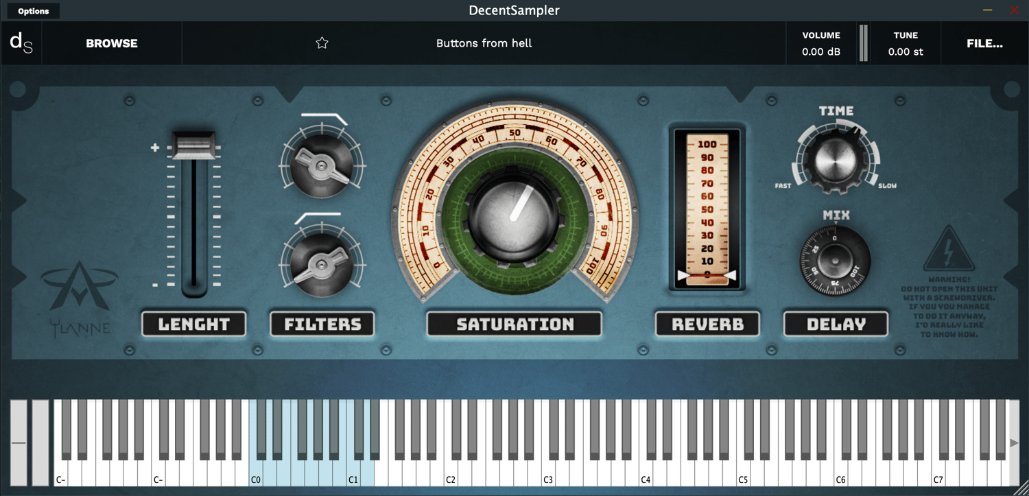At first, my plan was to simply place DecentSampler controls over a photographic background. But that didn’t feel right for the sound. Instead I decided to design everything myself, all built from vector graphics and photos I collected from different materials. That part of the process ended up taking even longer than the audio, but the result finally reflected the rough, mechanical character of the instrument.