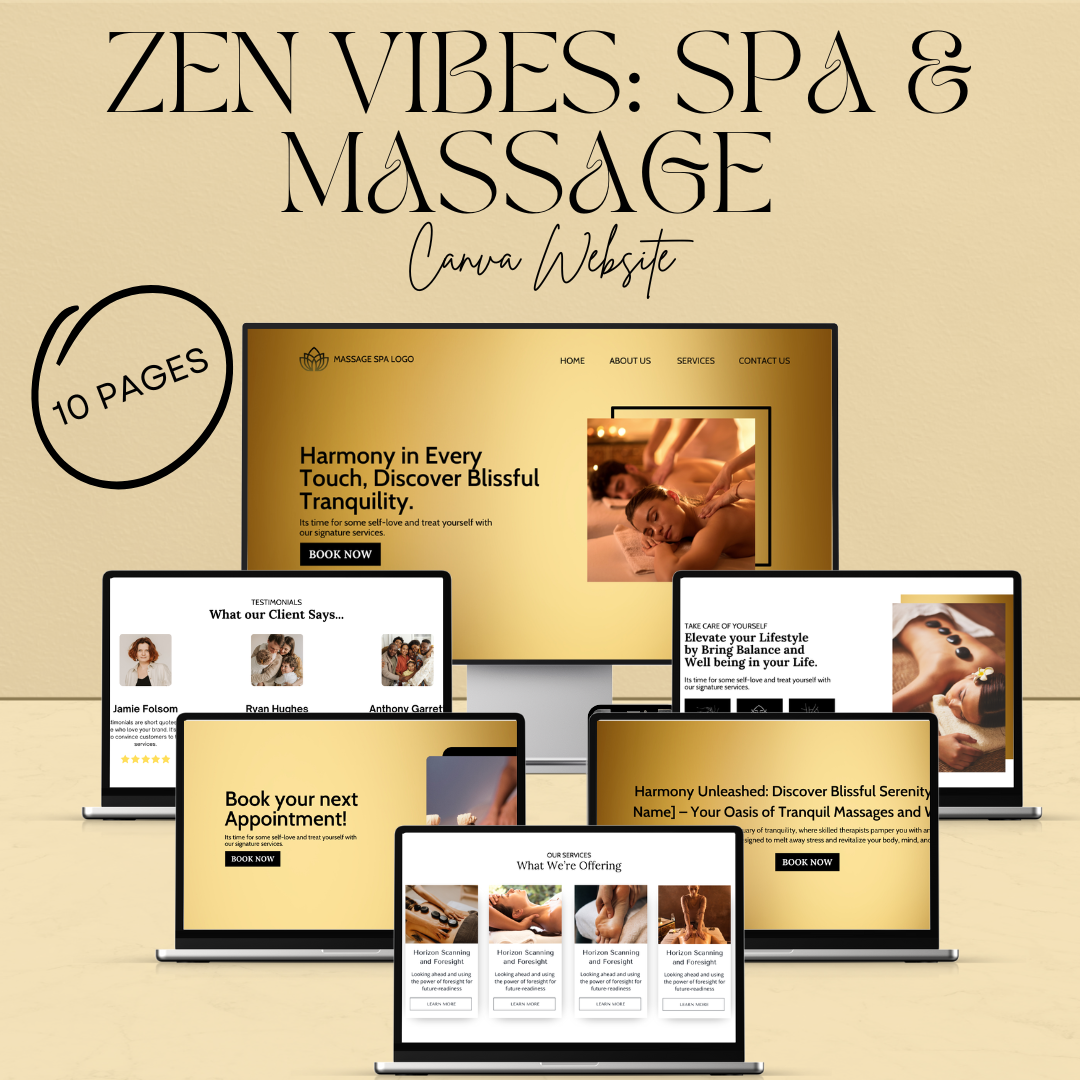 Step into ultimate relaxation and showcase your services with this 10-page Canva website template, designed for massage therapists, spas, wellness coaches, and any service-based business ready to make clients feel pampered from the moment they visit your site.