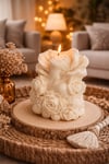 Αυτό το χειροποίητο κερί από 100% φυσικό κερί σόγιας δημιουργήθηκε για να μεταμορφώνει κάθε χώρο σε μια εμπειρία ζεστασιάς, χαλάρωσης και κομψότητας. Με μοναδικό γλυπτό σχέδιο λουλουδιών, αποτελεί ταυτόχρονα ένα εντυπωσιακό διακοσμητικό στοιχείο και ένα πολυτελές αρωματικό κερί που τραβά τα βλέμματα από την πρώτη στιγμή.